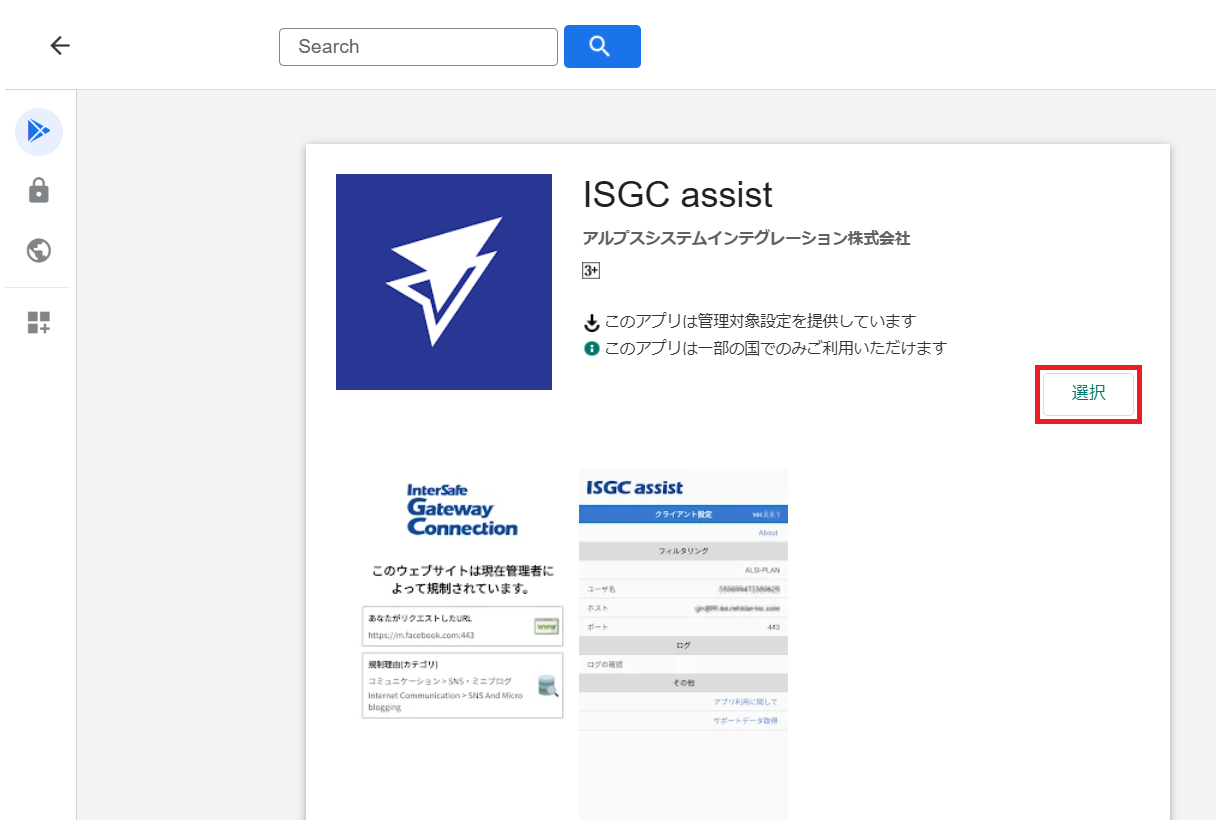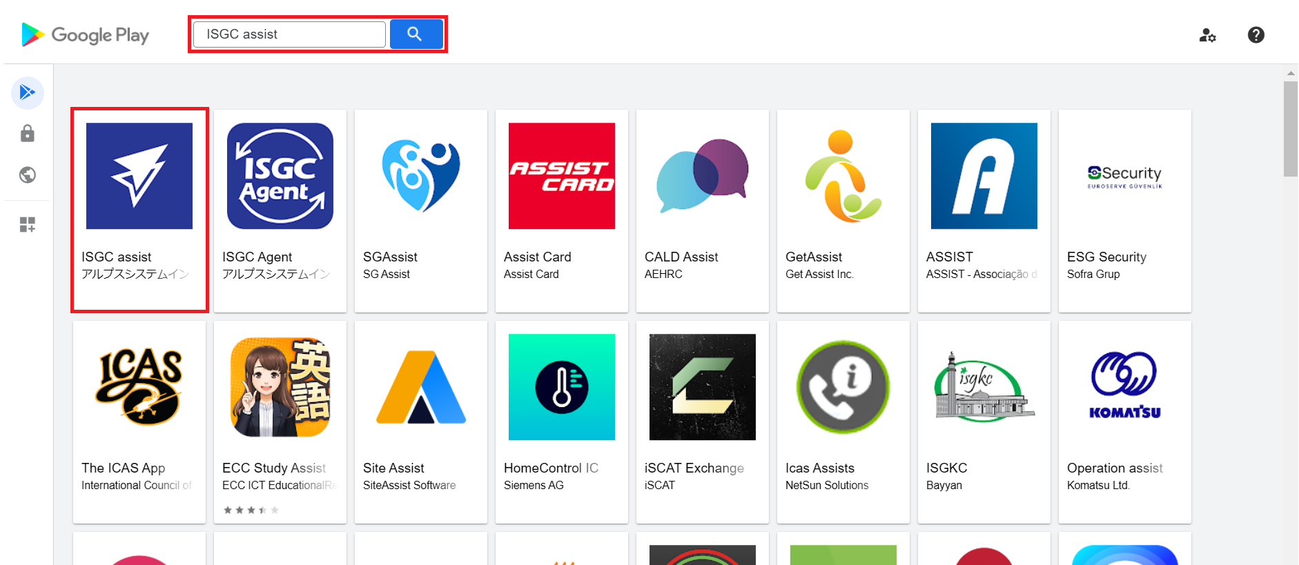3.検索ボックスに「ISGC assist」を入力し、アイコンをクリックします。