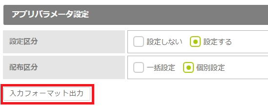 6.「アプリパラメータ設定」の「設定区分」の「設定する」にチェックを入れ、表示された「配布区分」の「個別設定」にチェックを入れます。